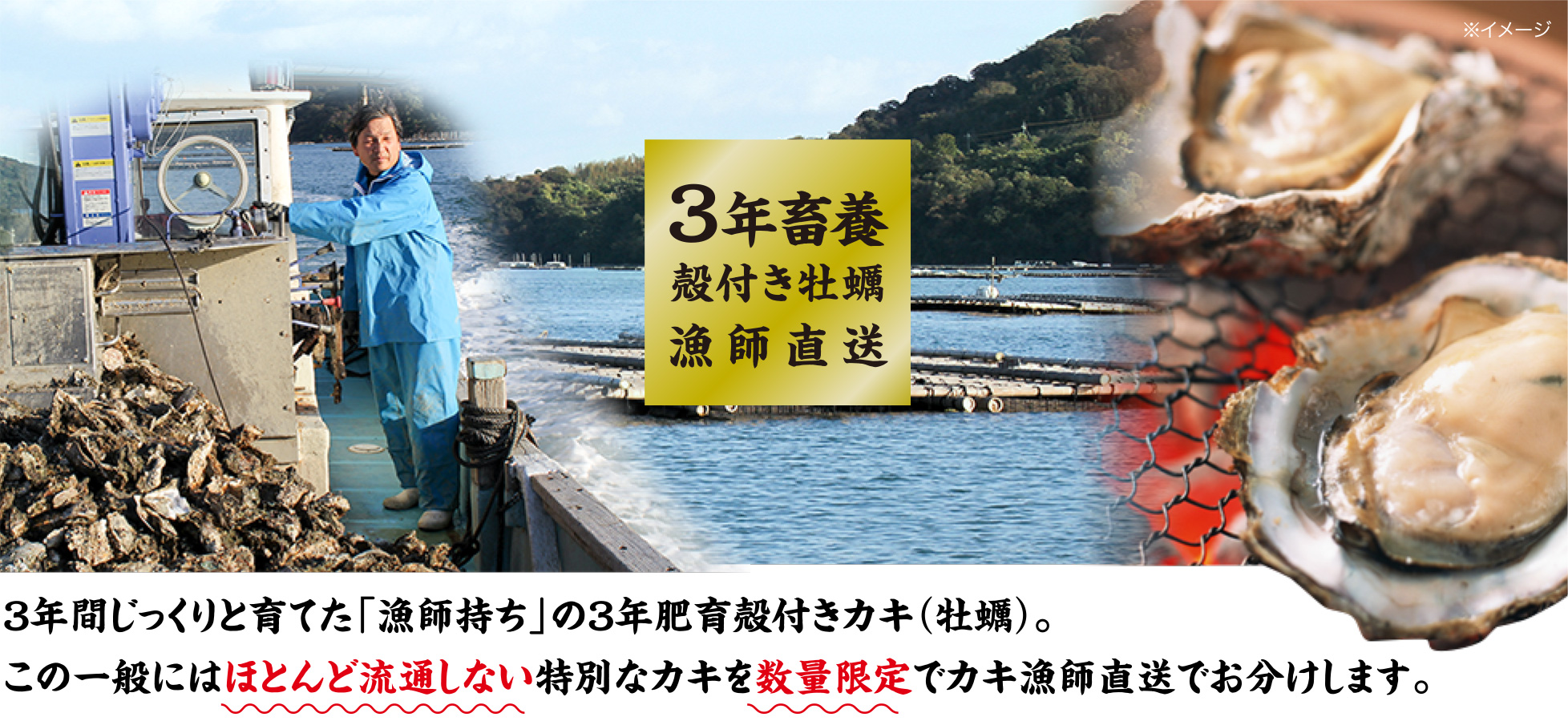漁師直送の新鮮な、味に自信ある牡蠣だけを水揚げ後3時間以内に発送いたします。