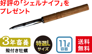 かきセットE(3年畜養Lサイズ殻付きカキ11リットル容器入り)